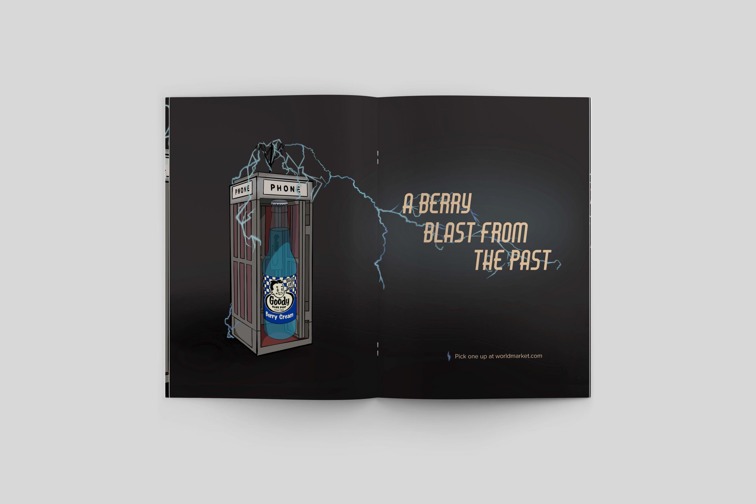 Create an Instagram ad, as well as a magazine spread ad, for an obscure beverage.
