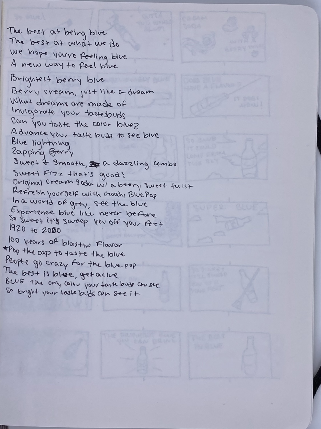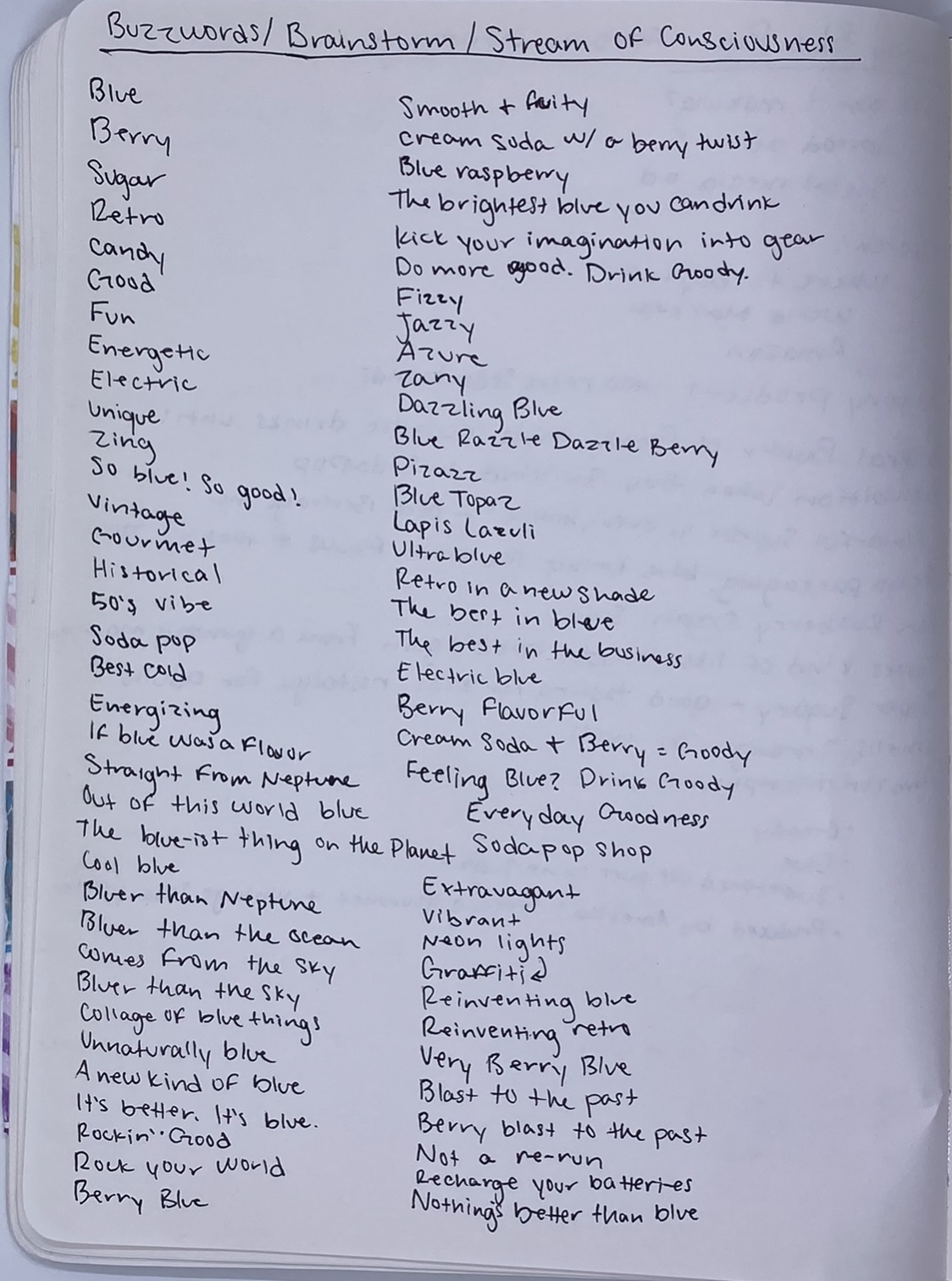I began by researching Goody Blue Pop, other companies like them, and how they stand out. I spent a lot of time on their website to make sure I understood both the company and those who would buy from them.